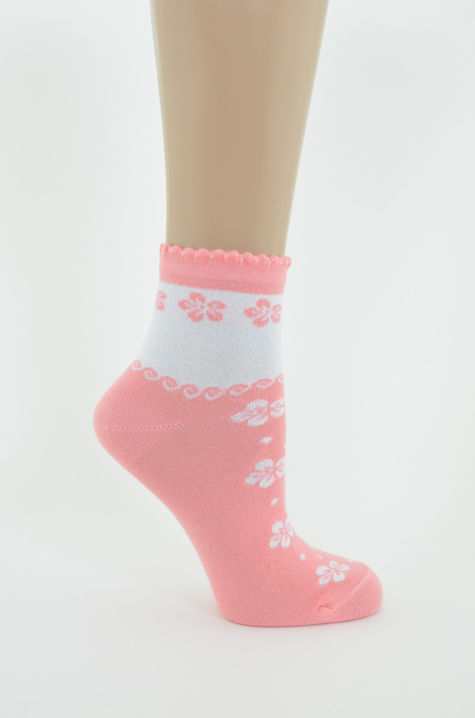 Цветочный рисунок по всему носку, фигурный борт.