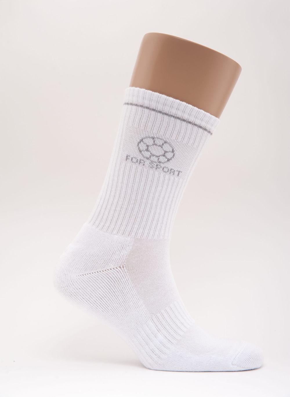 Спортивный носок с плюшевым следом, анатомической резинкой по всему паголенку и середине ступни. Рисунок "Мяч" и надпись «FOR SPORT».