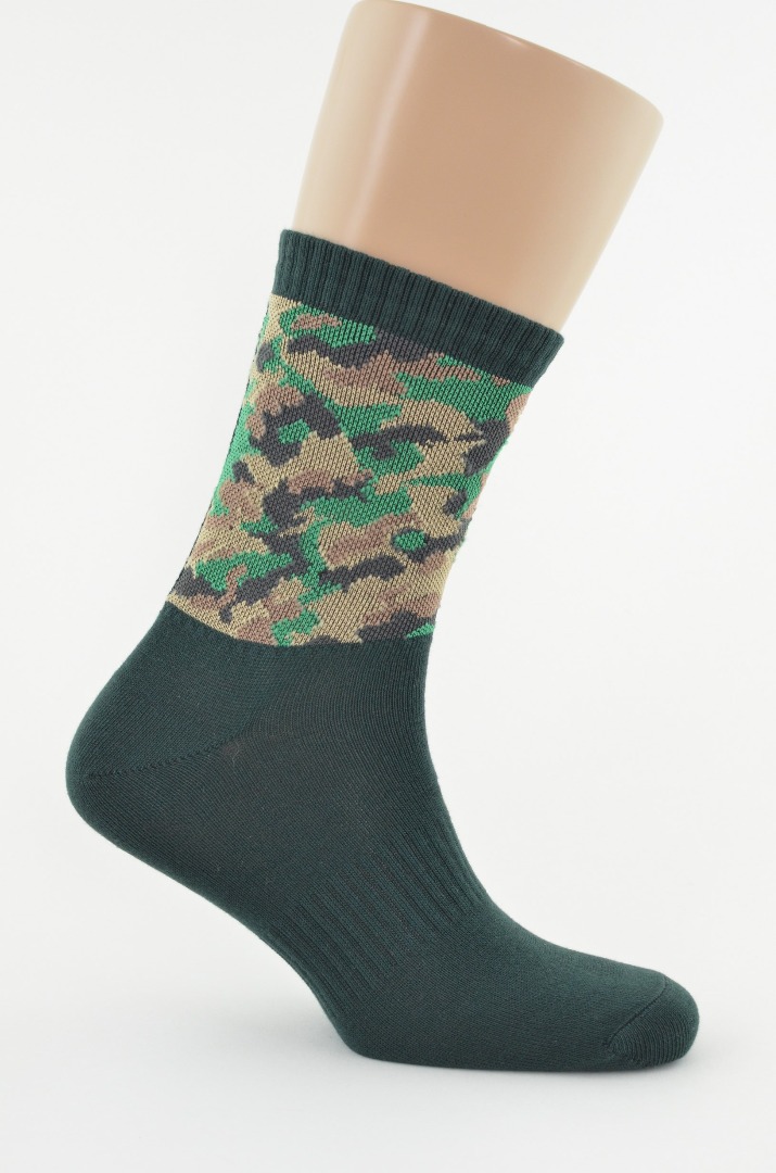 Спортивный носок в 2 нити с камуфляжным рисунком на паголенке.